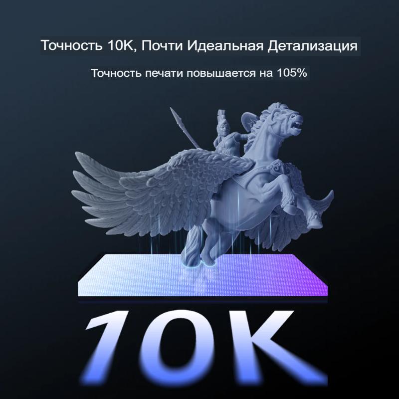 Пользователи оценят 4,3-дюймовый HD сенсорный экран, который предлагает новый интерфейс и поддержку восьми языков. Это обеспечивает комфортное и интуитивное взаимодействие с устройством. Кроме того, принтер демонстрирует на 105% более высокую точность благодаря 7-дюймовой 10K ЖК-матрице и 8 мм Т-образному винтовому стержню, что позволяет создавать высокодетализированные и динамичные модели.
