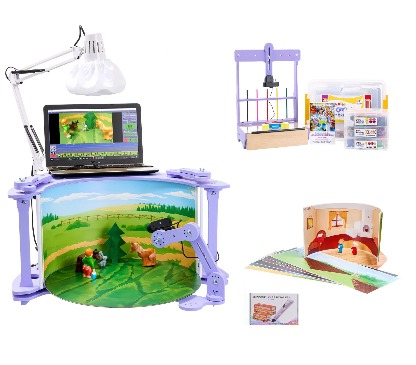 Сиреневая Мультстудия. Комплект Оптимальный – это набор инструментов и материалов для создания анимационных фильмов. Включает всё необходимое для реализации творческих идей детей и подростков. От простых техник до профессионального результата!