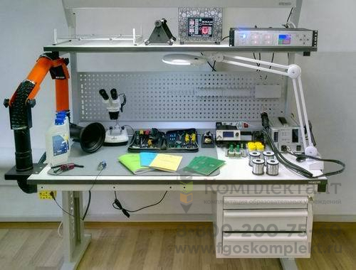 Для изучения правил пайки, монтажа и ремонта радиоэлектронных компонент и устройств, а также получению практических навыков в этой области предназначен данный стенд.