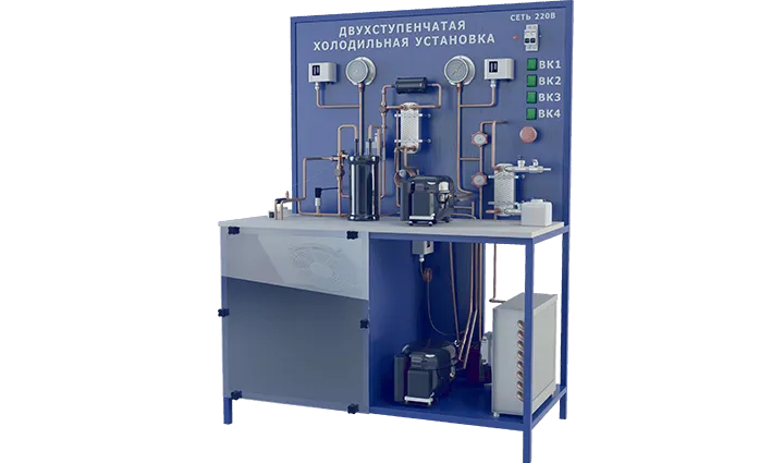 Лабораторная установка по изучению устройства и работы двухступенчатой холодильной установки – эффективное решение для глубокого погружения в принципы термодинамики и практического освоения передовых технологий охлаждения.