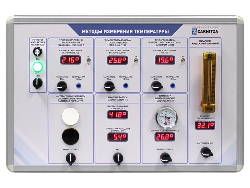 Комплект учебно-лабораторного оборудования "Методы измерения температуры" (далее – стенд) предназначен для проведения лабораторных практических занятий по теме "Первичные преобразователи и приборы для измерения температуры" курса "Основы метрологии". Данное оборудование может применяться в процессе обучения в учреждениях среднего и высшего профессионального образования для получения базовых и углубленных знаний и навыков.