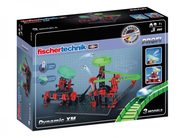 Конструктор FISCHERTECHNIK «Динамика XM» для детей старше 7 лет. Динамика XM заинтересует вас своей оригинальностью. К обычным поворотам, препятствиям и быстрым спускам добавились новые элементы: катапульта и трамплин. Шарики выстреливаются пружинной катапультой на трамплин и отскакивая от него попадают в улавливающую воронку. Точность катапультирования обеспечивается за счет механизма прицеливания, с помощью которого можно вращать механизм вокруг трех осей. Из набора можно собрать три разных конструкции. Он отлично сочетается с наборами: Динамика L2, Динамика XXL. Инструкции по объединению с другими наборами можно найти на сайте fischertechnik.Состав набора: