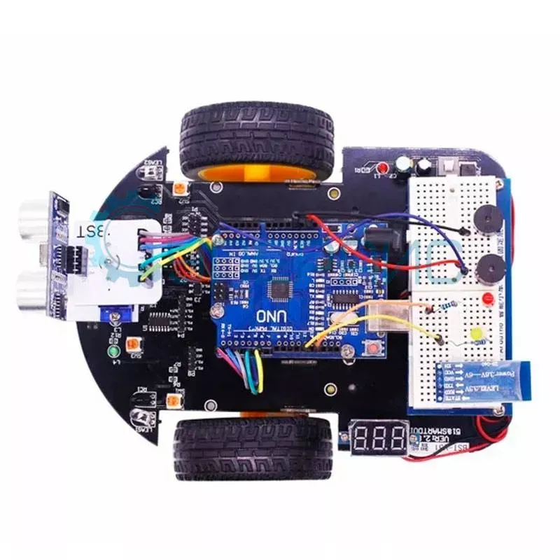 движение по заданной траектории или линии. В заданном режиме машинка-робот передвигается по заранее сформированному пути благодаря существованию датчиков линии. Robot Car умеет двигаться вперед, назад, вправо и влево, он легко проезжает как плавные повороты, так и трудные участки маршрута, например, в форме восьмерки;преодоление препятствий. Робоплатформа оснащена ультразвуковым датчиком расстояний, который используется для нахождения преград на пути робота. Посредством особого алгоритма передвижения роботу удается объезжать препятствия и не застревать в углу;