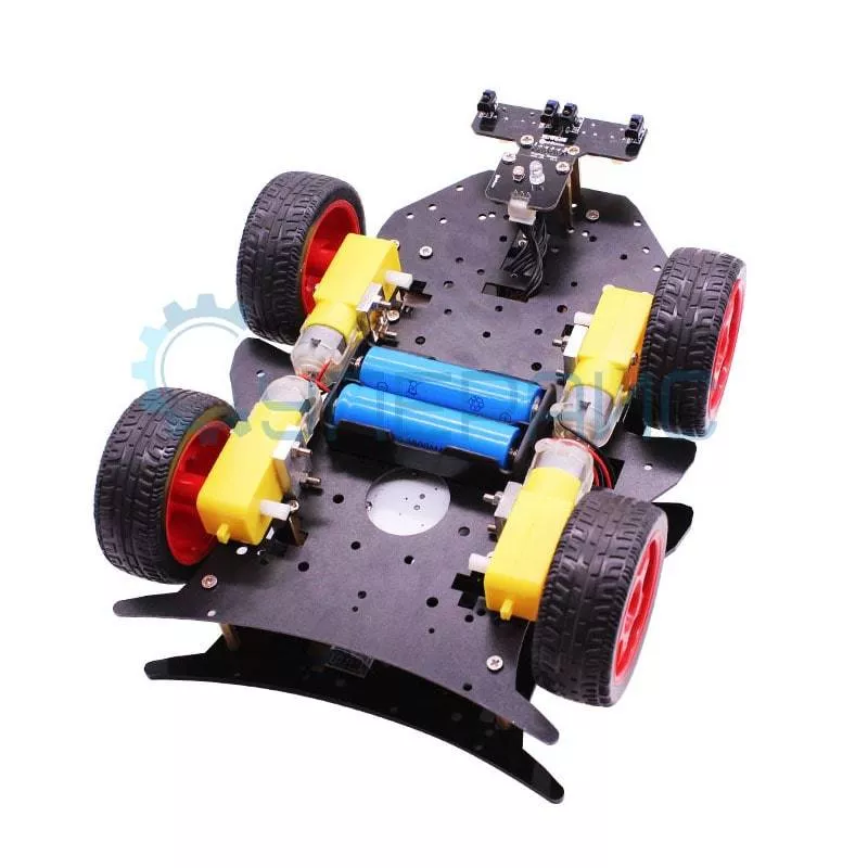 Это самый известный эксперимент начинающего роботостроителя. Робот умеет двигаться по заранее сформированному пути по полю с черной линией благодаря наличию датчиков линии. В заданном режиме 4WD Robot способен ехать вперед, назад, вправо и влево, он легко проезжает как плавные повороты, так и трудные участки маршрута, например, прямые углы, перекрестки, зигзаги.
