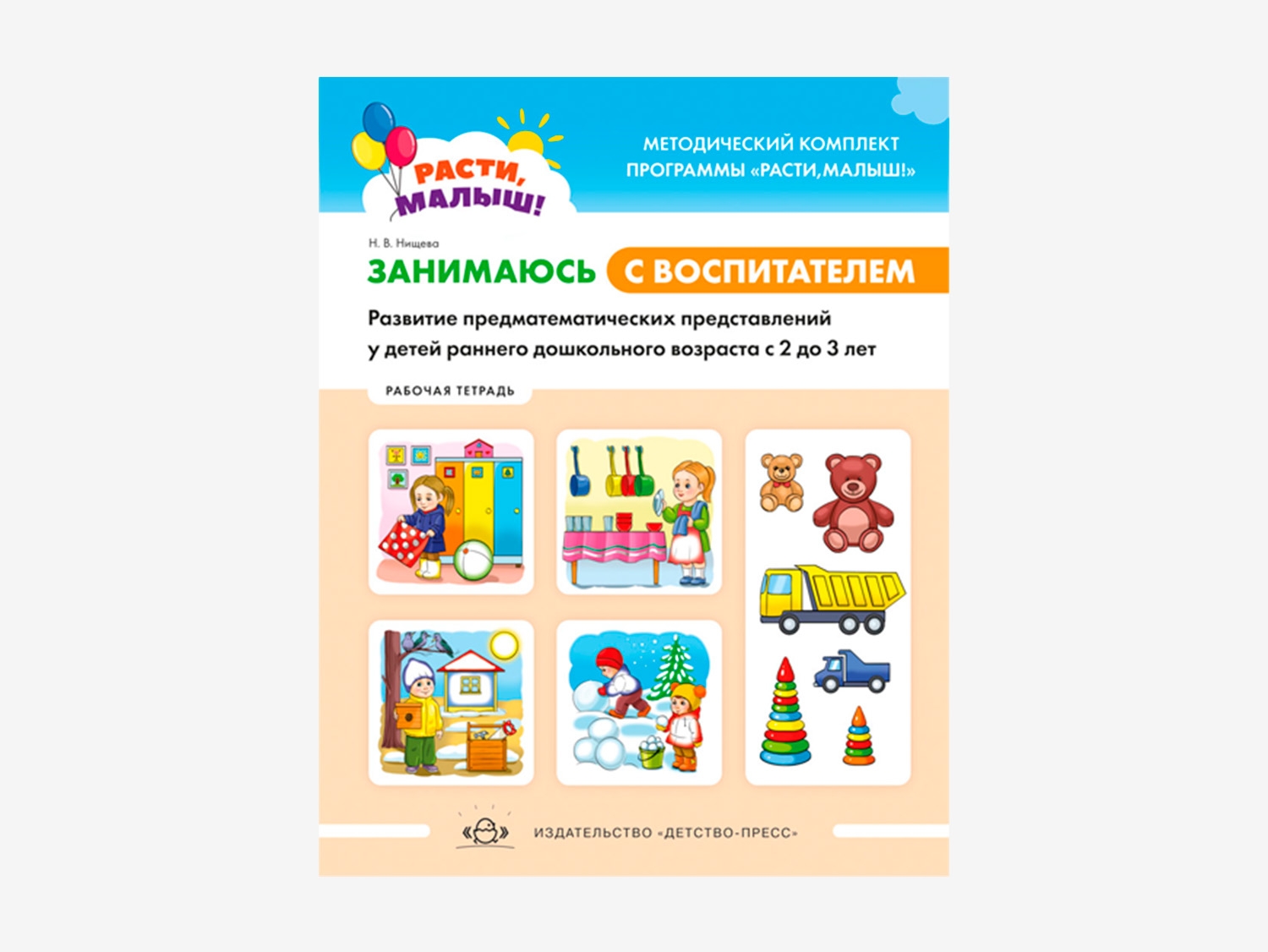 - Расти, малыш! Занимаюсь с воспитателем. Развитие предматематических представлений у детей раннего дошкольного возраста (с 2 до 3 лет). Рабочая тетрадь. ФГОС