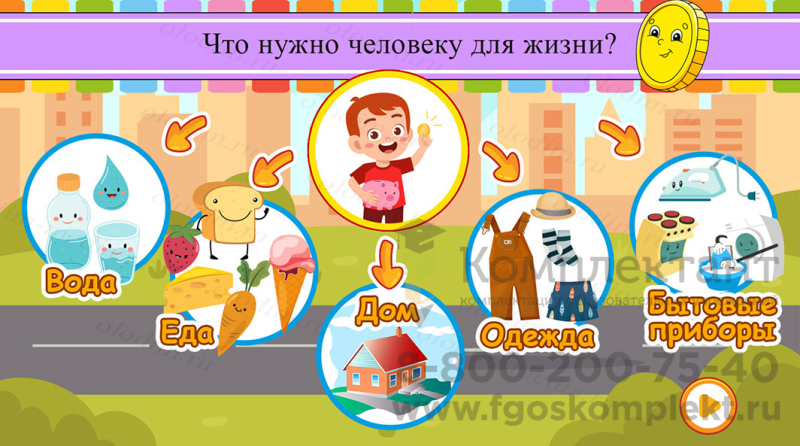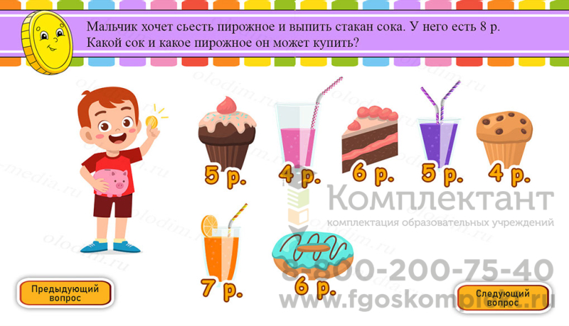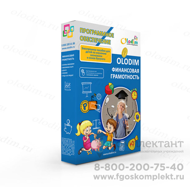 Комплект программного обеспечения "Olodim Финансовая грамотность" – это электронное учебное пособие для интерактивного оборудования, которое в игровой форме знакомит детей с основами экономики. Выполнение заданий позволяет не только легко запомнить и закрепить изучаемый материал, но и развить память, внимание и логическое мышление.
