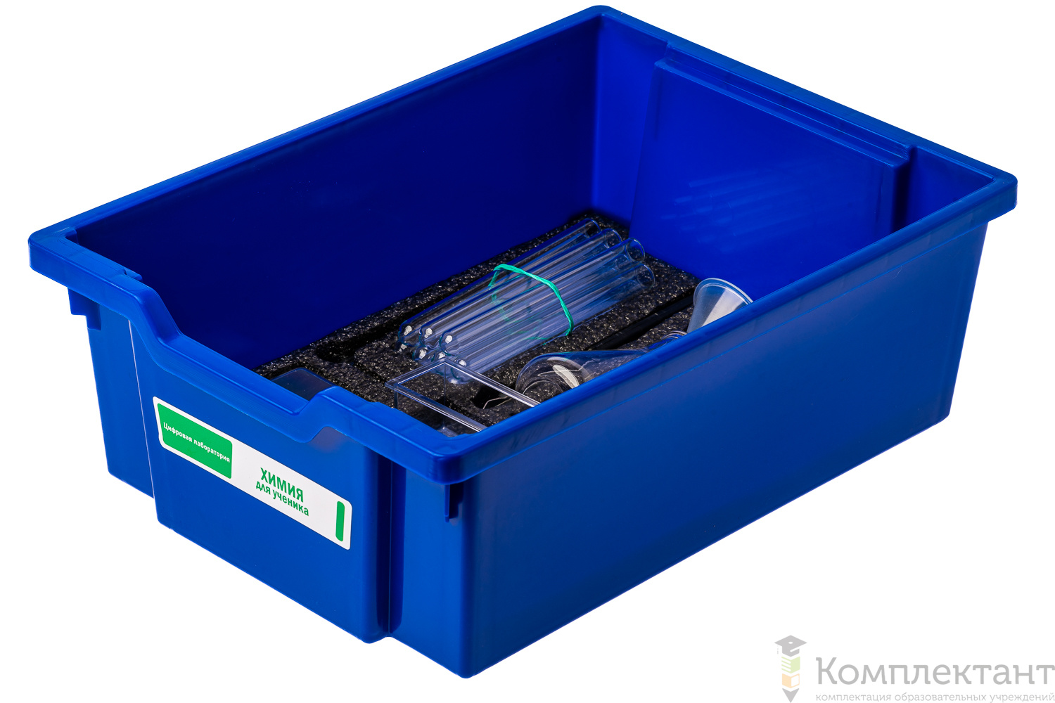 Цифровая лаборатория укомплектована в пластиковую систему хранения, которая закрывается прозрачной пластиковой крышкой на защелках для обеспечения наблюдения за содержимым. Комплект оборудования и датчики в системе хранения располагаются на ложементах.