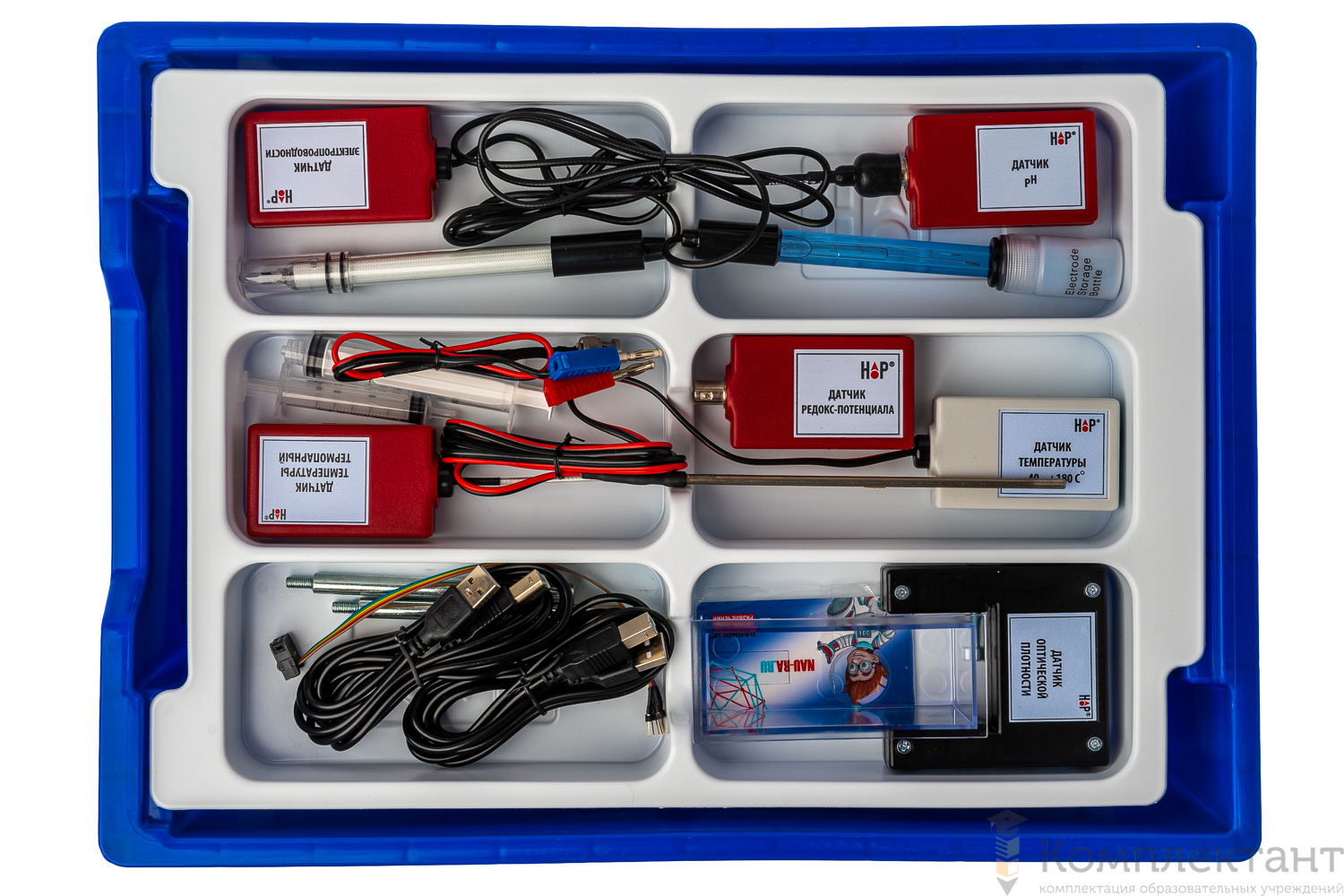 Цифровая лаборатория по химии для учителя – это комплект датчиков, на базе которых поочередно выполняются работы по измерению параметров окружающей среды и набор учебного оборудования, необходимого для выполнения химических опытов.