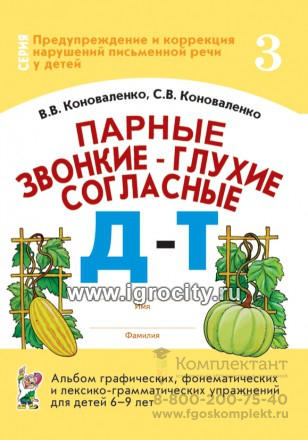 Альбом графических, фонематических и лексико-грамматических упражнений "Парные звонкие-глухие согласные Д-Т" для детей 6-9 лет, Коноваленко В.В., Коноваленко С.В.