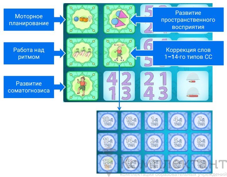 Программно-методический комплекс обеспечивает возможность проводить интерактивные занятия как в групповой игровой форме, так и в формате индивидуального взаимодействия.