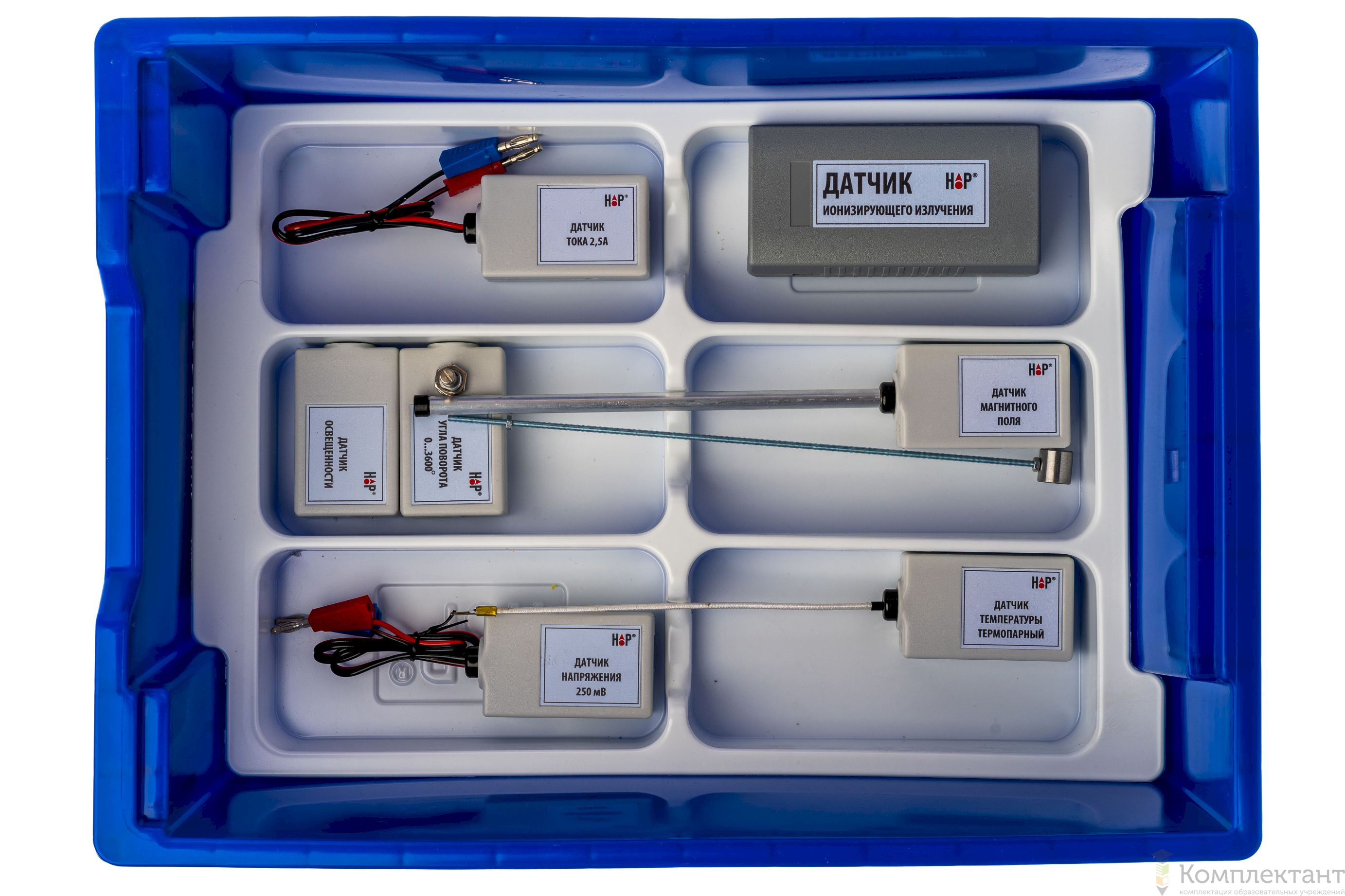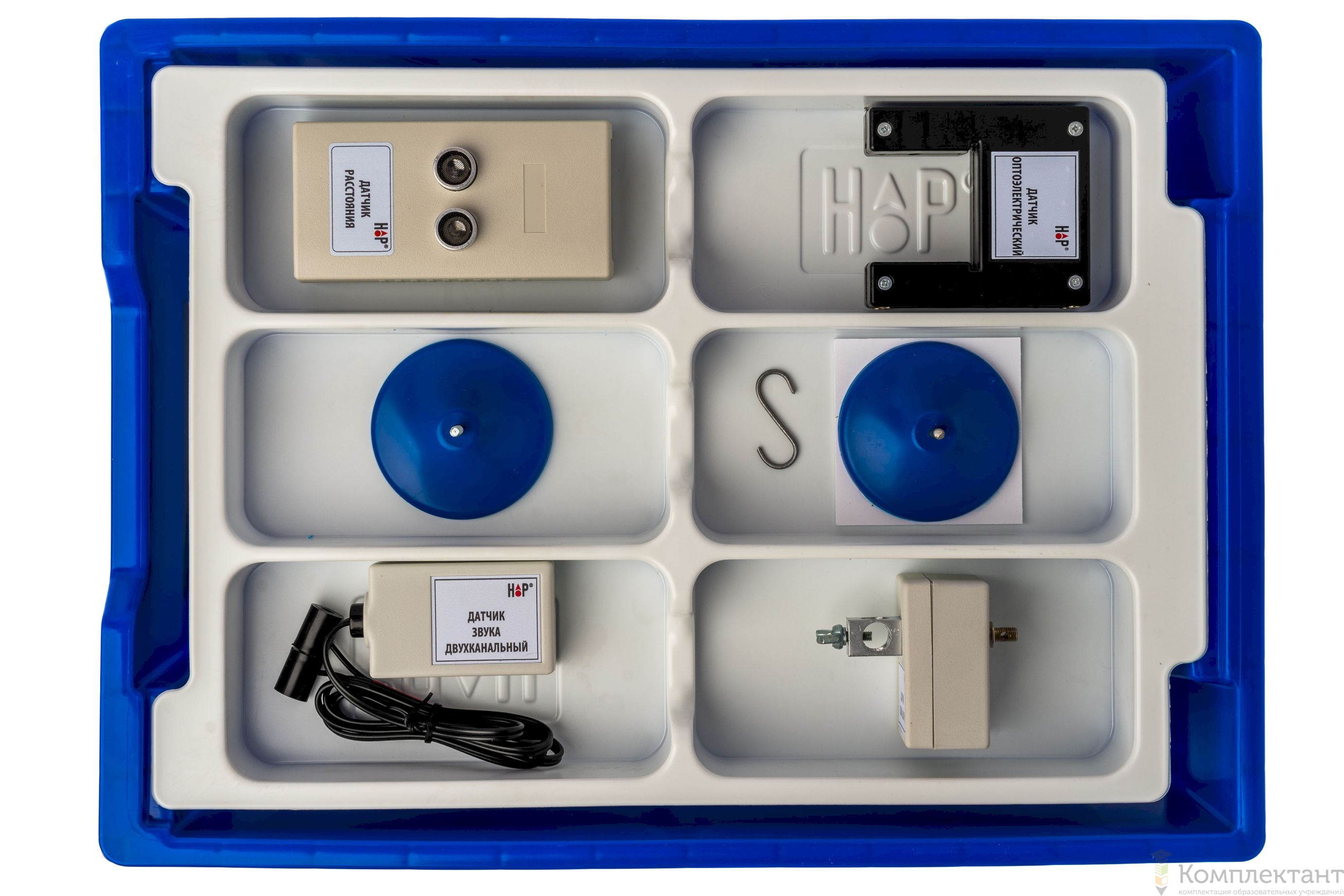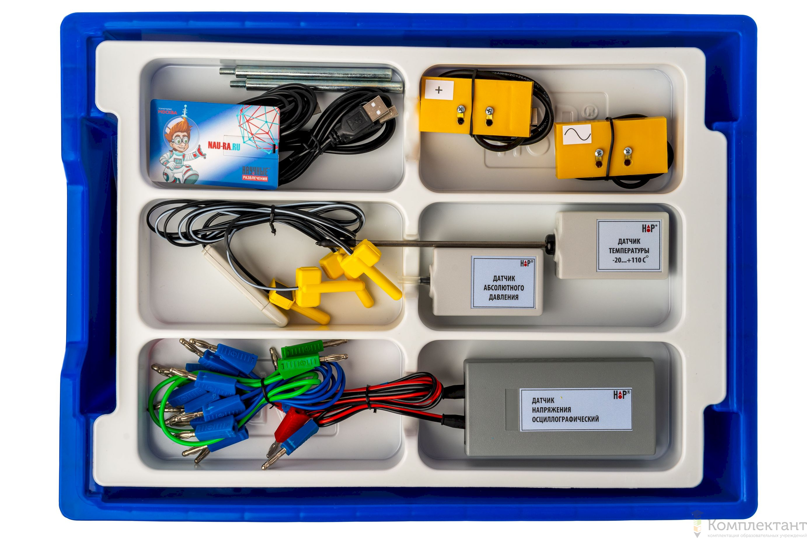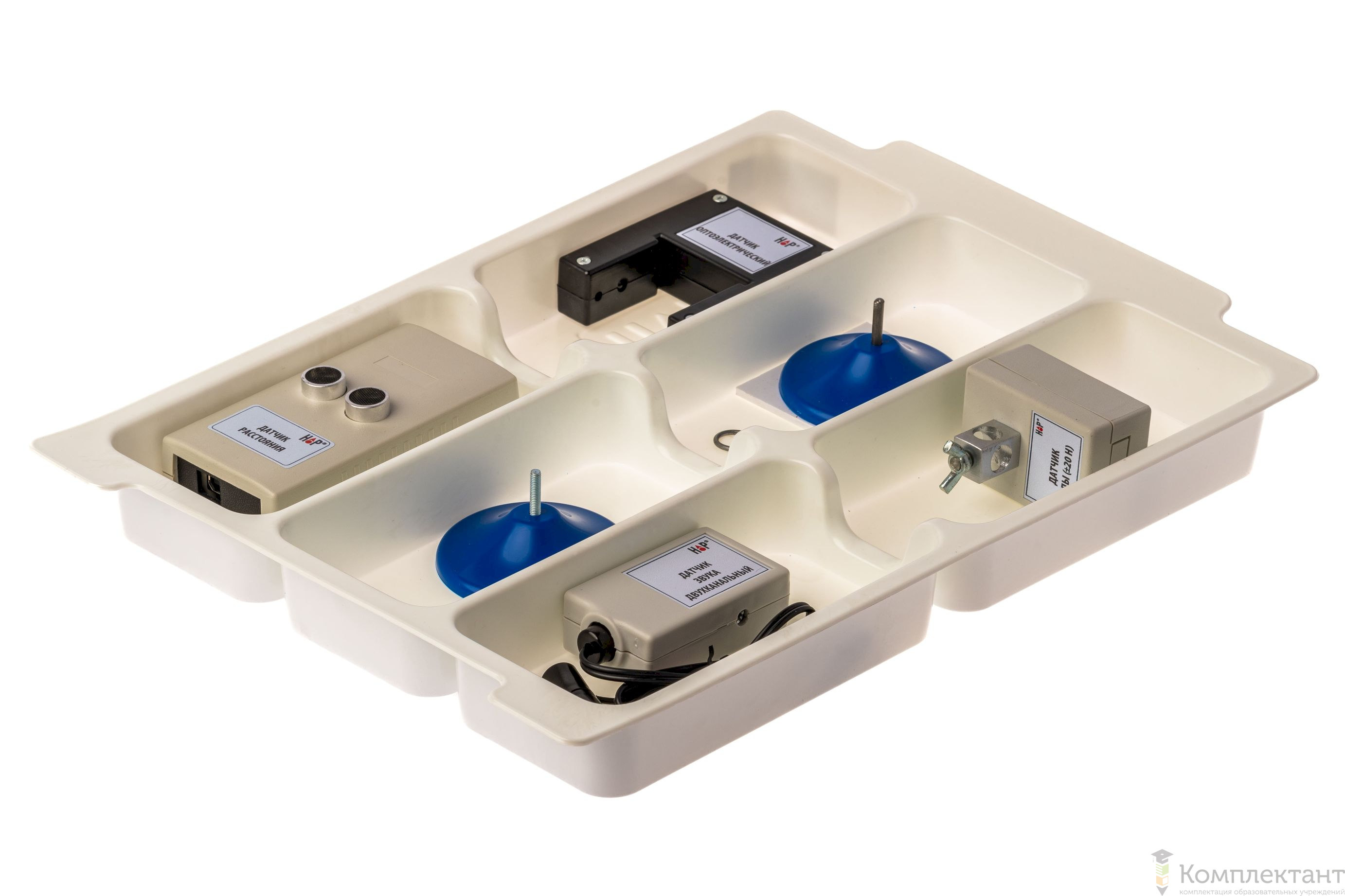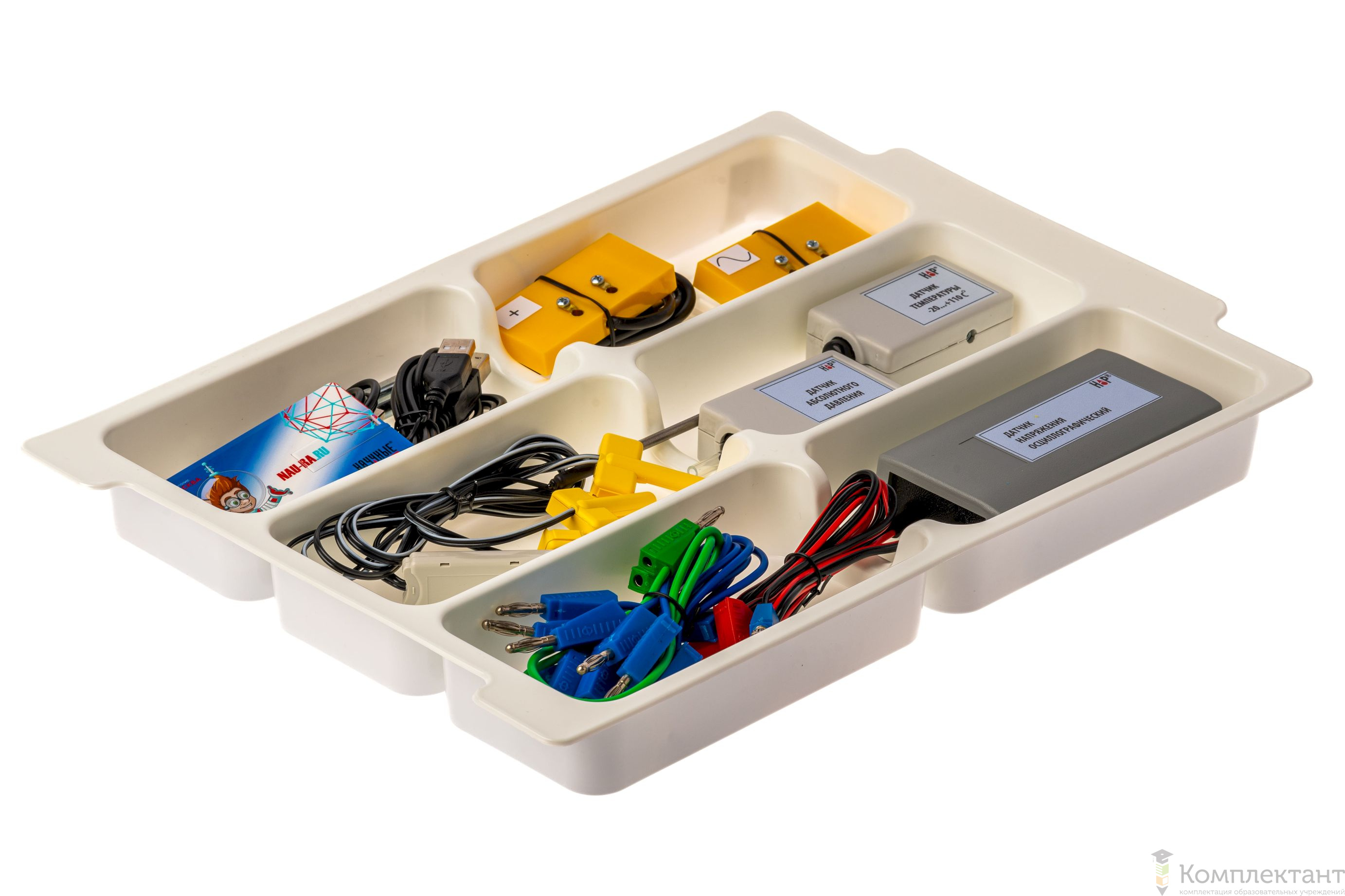 Все оборудование цифровой лаборатории (кроме скамьи лабораторной) укомплектовано в пластиковые системы хранения, которые закрываются прозрачной пластиковой крышкой на защелках для обеспечения наблюдения за содержимым. Комплект оборудования и датчики в системах хранения располагаются на ложементах в индивидуальных ячейках.