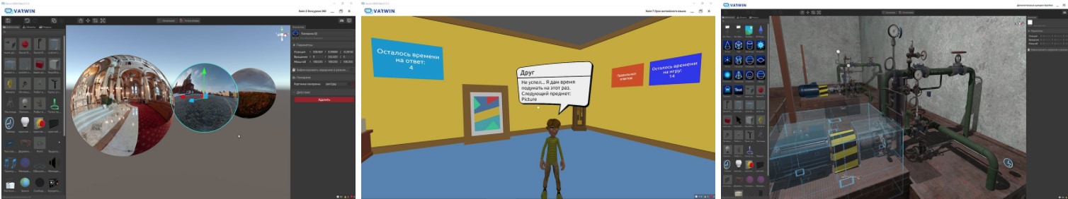 Разработанные VR-приложения воспроизводятся как в VR-гарнитурах, так и на стационарном компьютере.